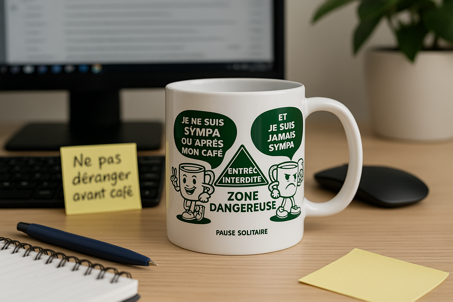 Un cadeau parfait pour les amateurs de café et d’humour, ou simplement pour rendre vos pauses encore plus sympas (ou dangereuses !).