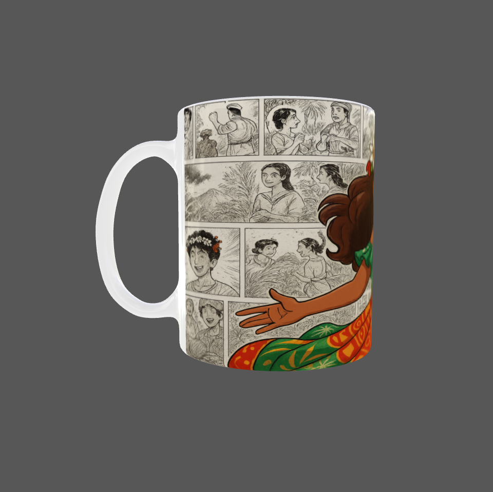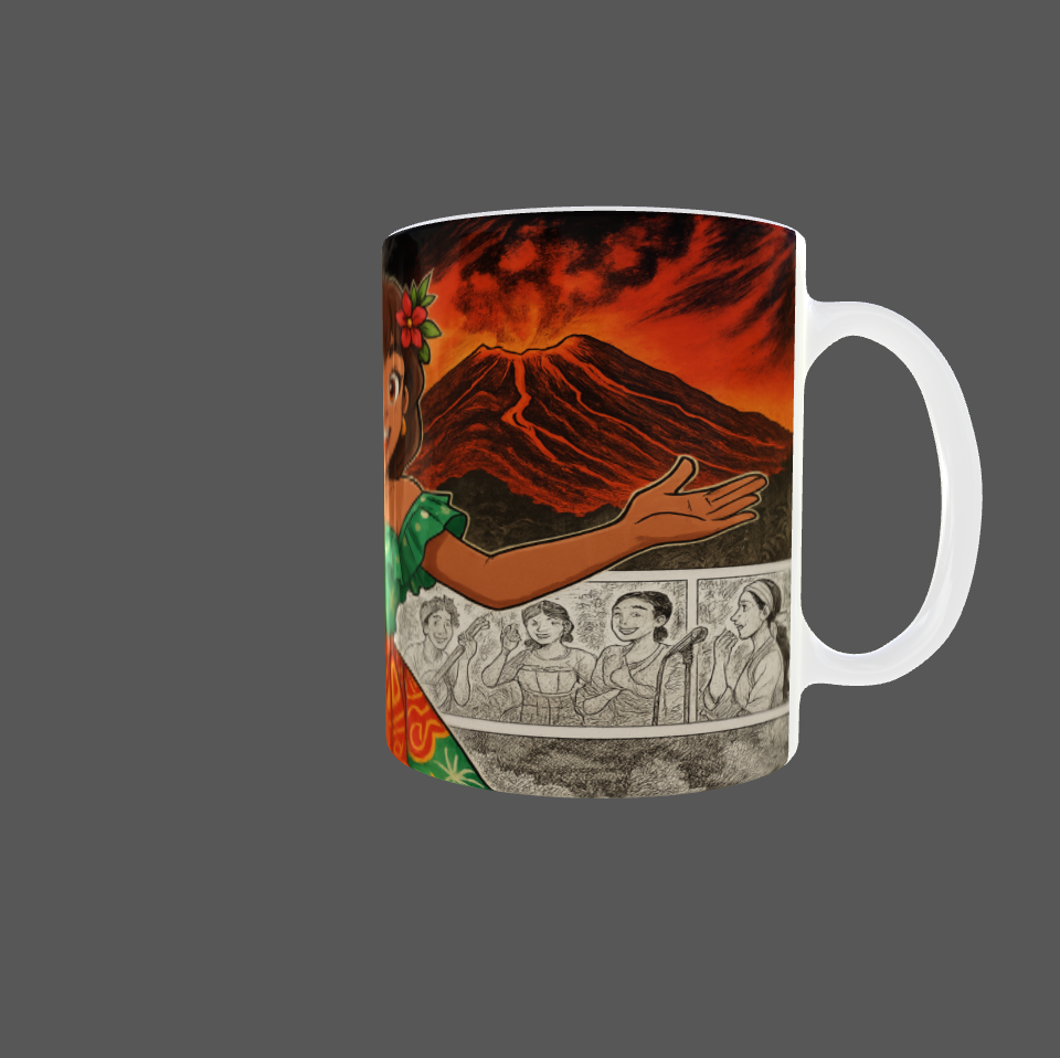 Apportez une touche d'aventure et de chaleur insulaire à vos moments café avec ce magnifique mug de 11oz (325 ml) inspiré d’une héroïne tropicale rayonnante. Ce design vibrant met en vedette une jeune princesse souriante en robe traditionnelle, entourée d’un paysage spectaculaire de volcan en éruption, illustrant force, nature et joie de vivre.