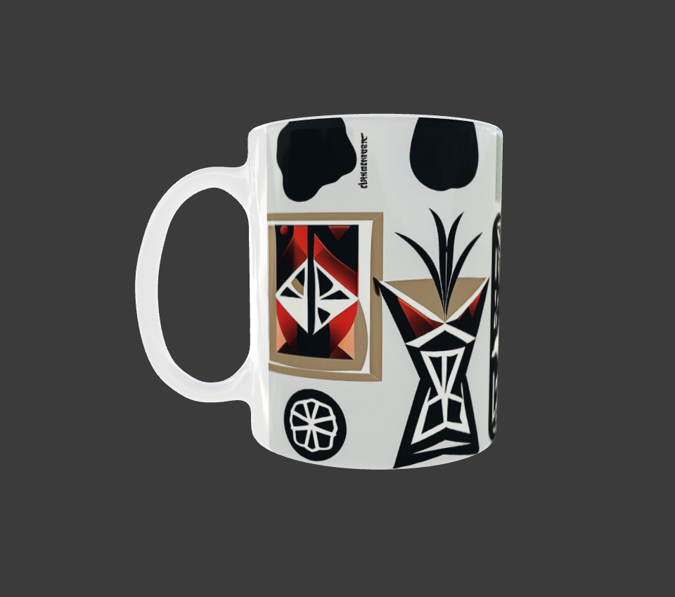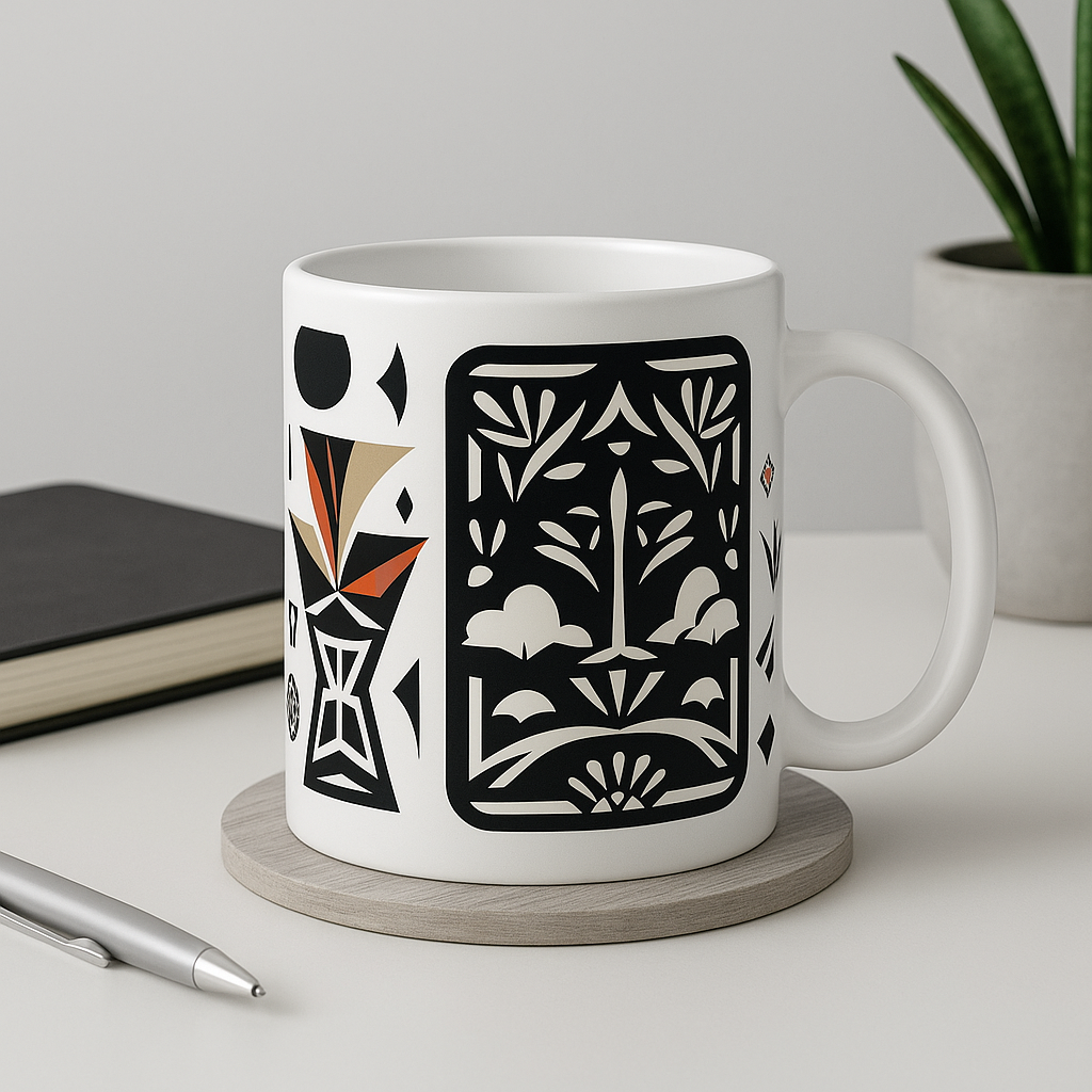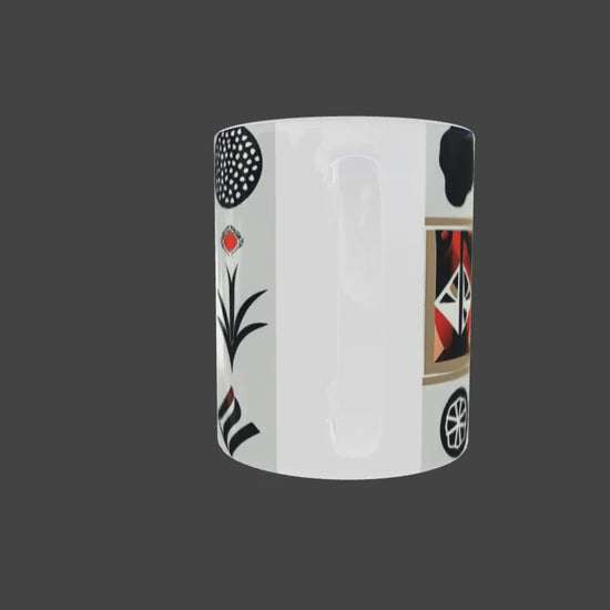 Apportez une touche d’élégance et de modernité à vos pauses café avec ce mug en céramique 11oz. Son design unique s’inspire de l’art du papier découpé et des formes géométriques contemporaines. On y retrouve des motifs végétaux stylisés, des lignes noires contrastées et des touches de rouge et de beige qui apportent chaleur et dynamisme.